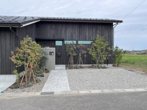 アプローチです。5メートルくらいの歩道を作り、植栽を見ながら通ります。