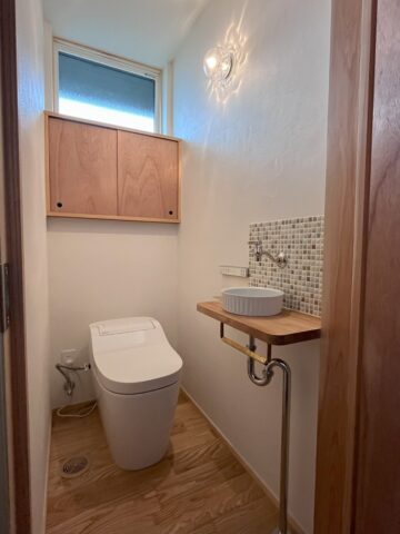 トイレです。小さな手洗いとタイルが可愛い感じです。