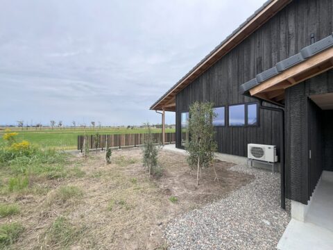ガレージの裏はプライベートスペースでここでバーベキューをしたり出来ます。まだ隣が空き地なので少し植栽を植えています。